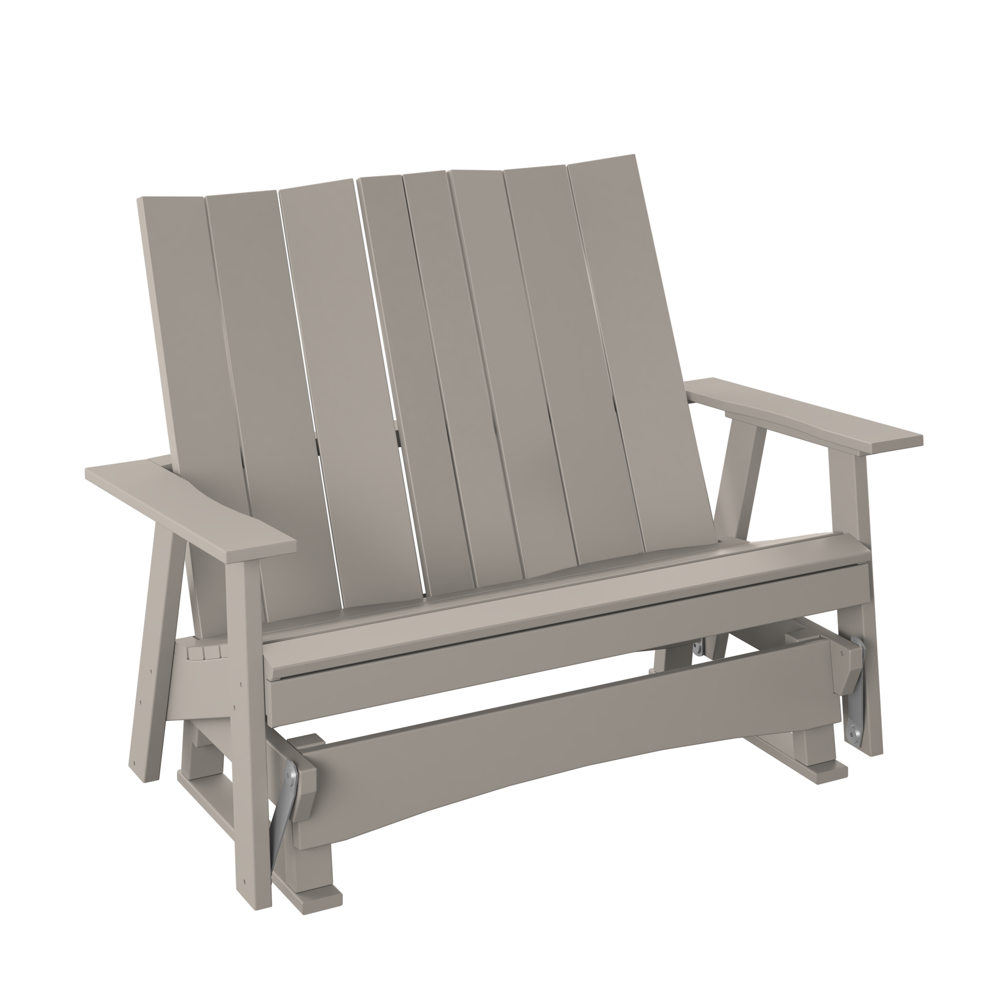 A modern two-seat Adirondack glider with a clean, updated silhouette and smooth motion, built for shared lounging on the porch or patio.